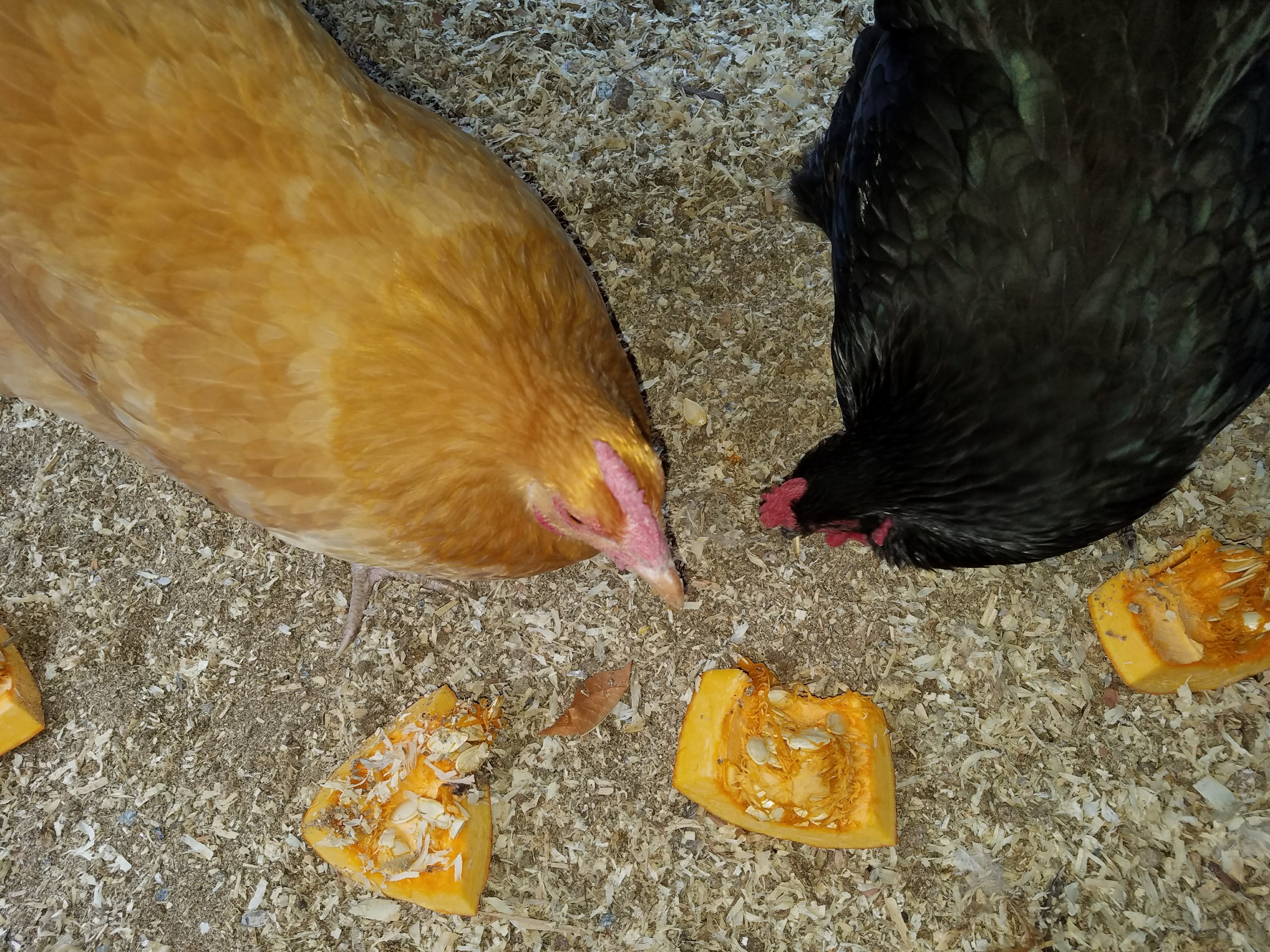 With fall comes the changing of leaves, the crisp cool air, pumpkin latte commercials up the wazoo, and pumpkins themselves. I gave the girls (chickens) some pumpkin tonight. They enjoyed it very much in fact they had it almost all gone before I could even snap a photo of them.