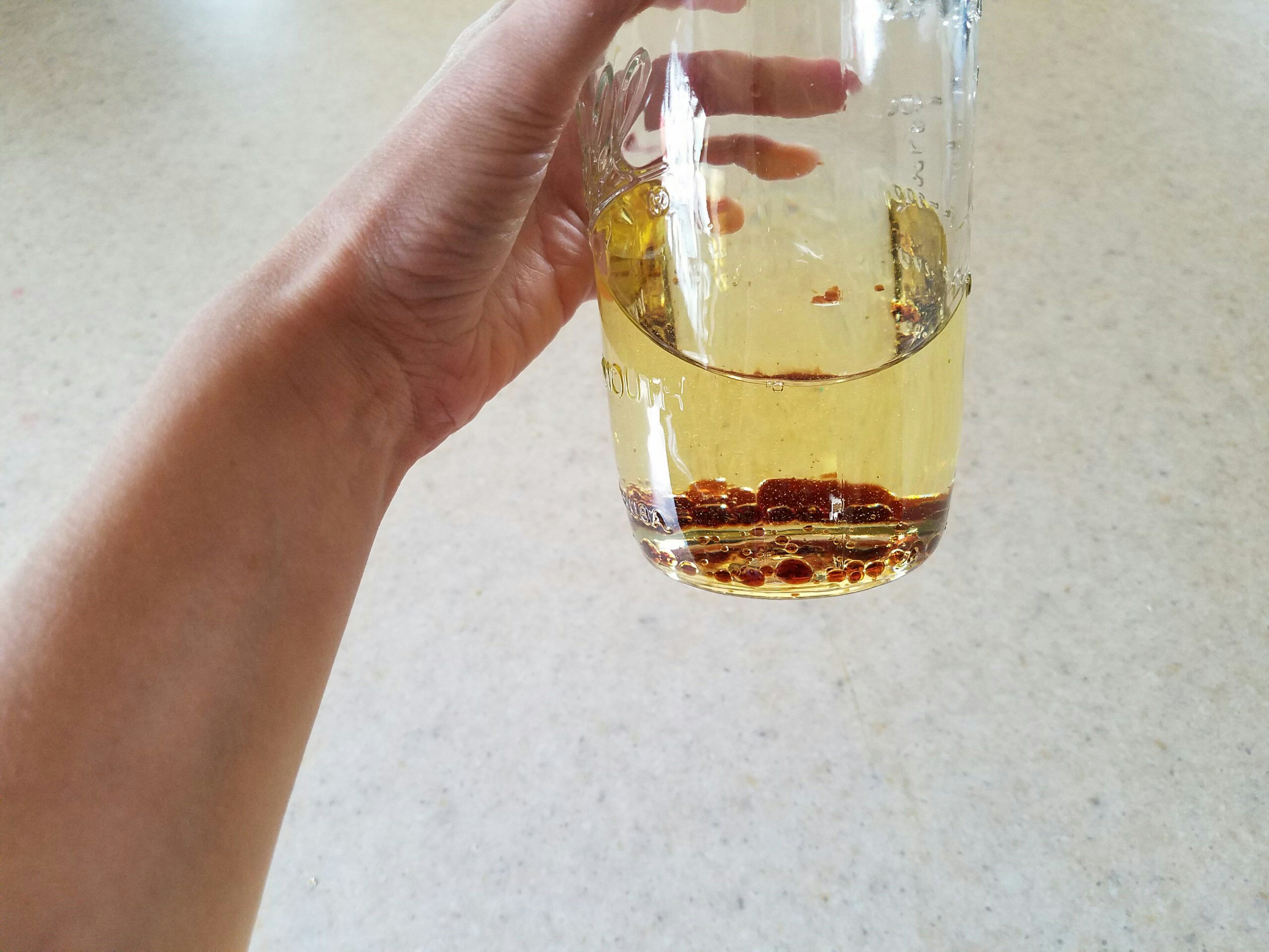 Fill the mason jar almost to the half way point with your vegetable oil.