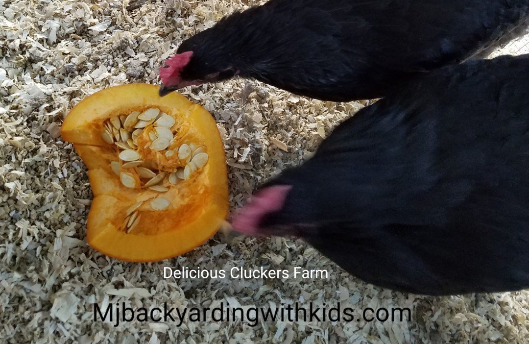 It’s that time of the year when everything is pumpkin themed! My girls (chickens) get their share of pumpkin fun too. Thankfully they really don’t care on presentation of their pumpkins. ππππ€π€π€ pumpkin is cool it’s a natural worm preventative but not a cure.