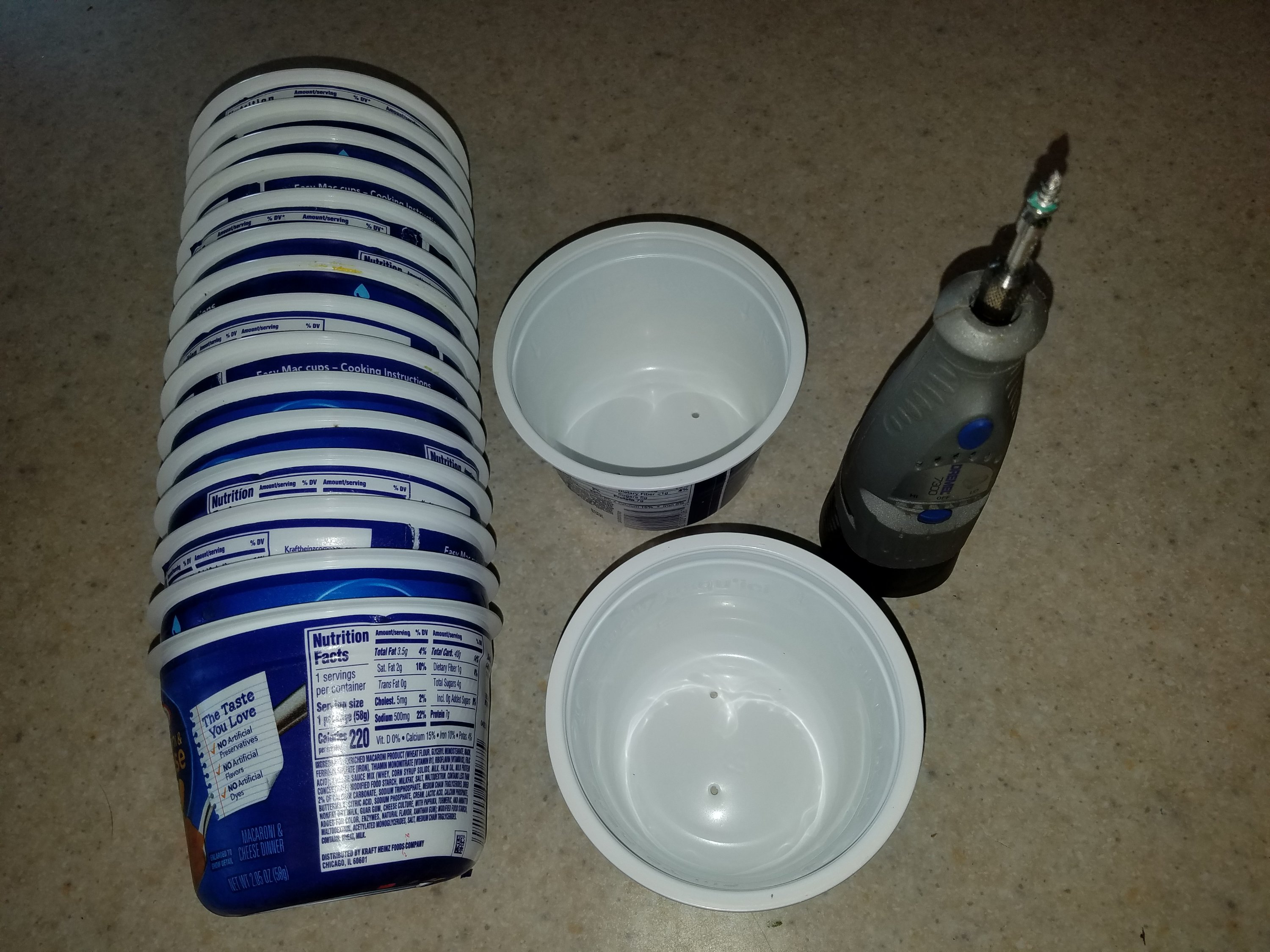 I started some seeds today. I like to save the single serving containers for mac n cheese. They work great for holding paint for when the little ones are doing art but today I’m going to use them for planting seeds.