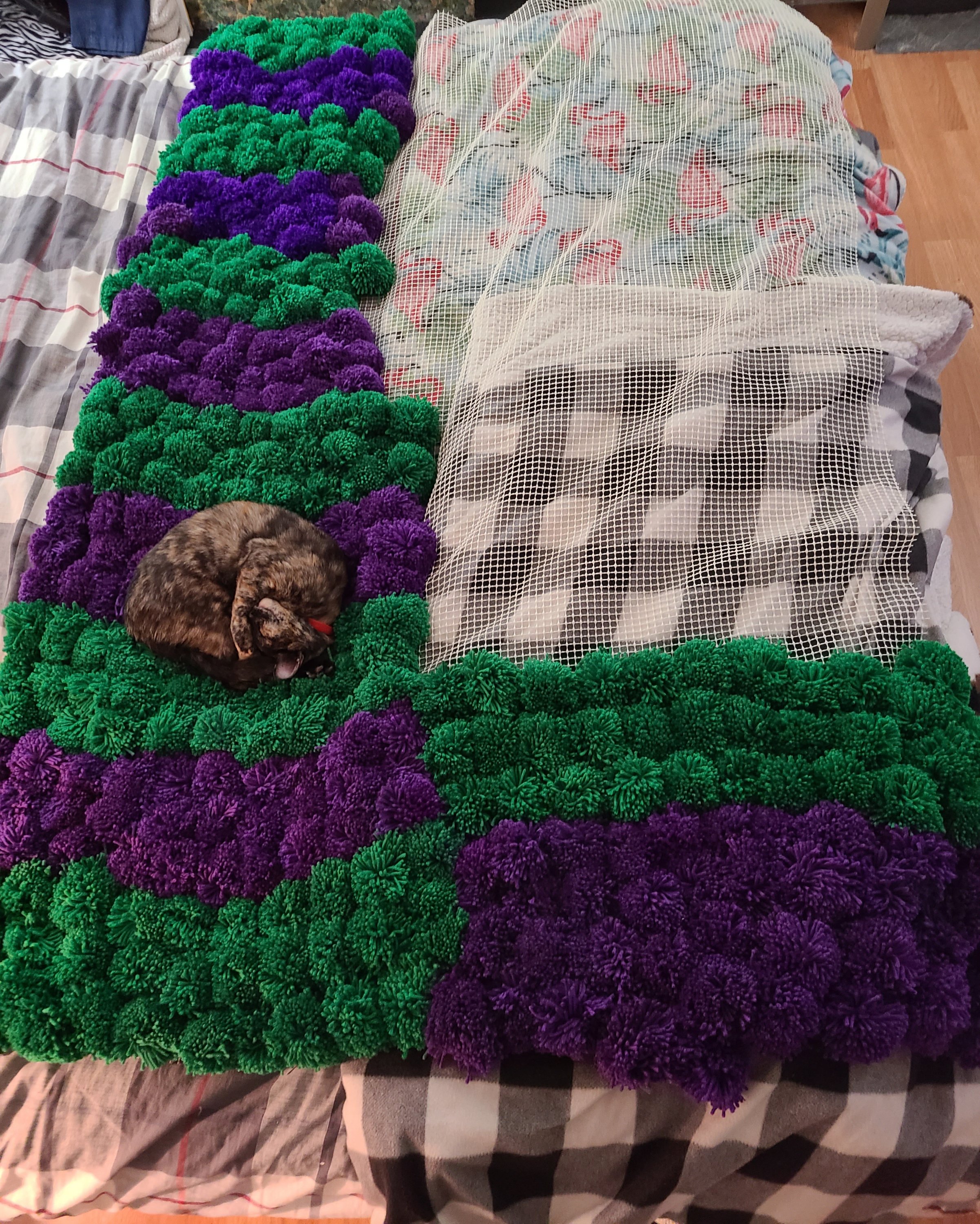 I’m glad my #1 likes the rug as you can see in the photos the cat does also. I will not be making another rug of this size. Making that many pom poms takes a lot of time. I’ll still be making ones that are bath mat size. #3 wants one for her room next. #pleasefollow #pleaseshare #thankyou #hobby #backyarding #mjbackyardingwithkids #crafts #rug