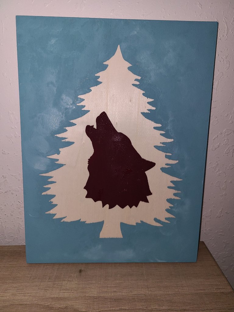For the past few months I’ve had massive headaches. Which has made me behind on a lot of work. This week miricrochet is coming over to help me paint one of the rooms! A big thank you to her! I did get a some art done. I did a wolf in a tree.