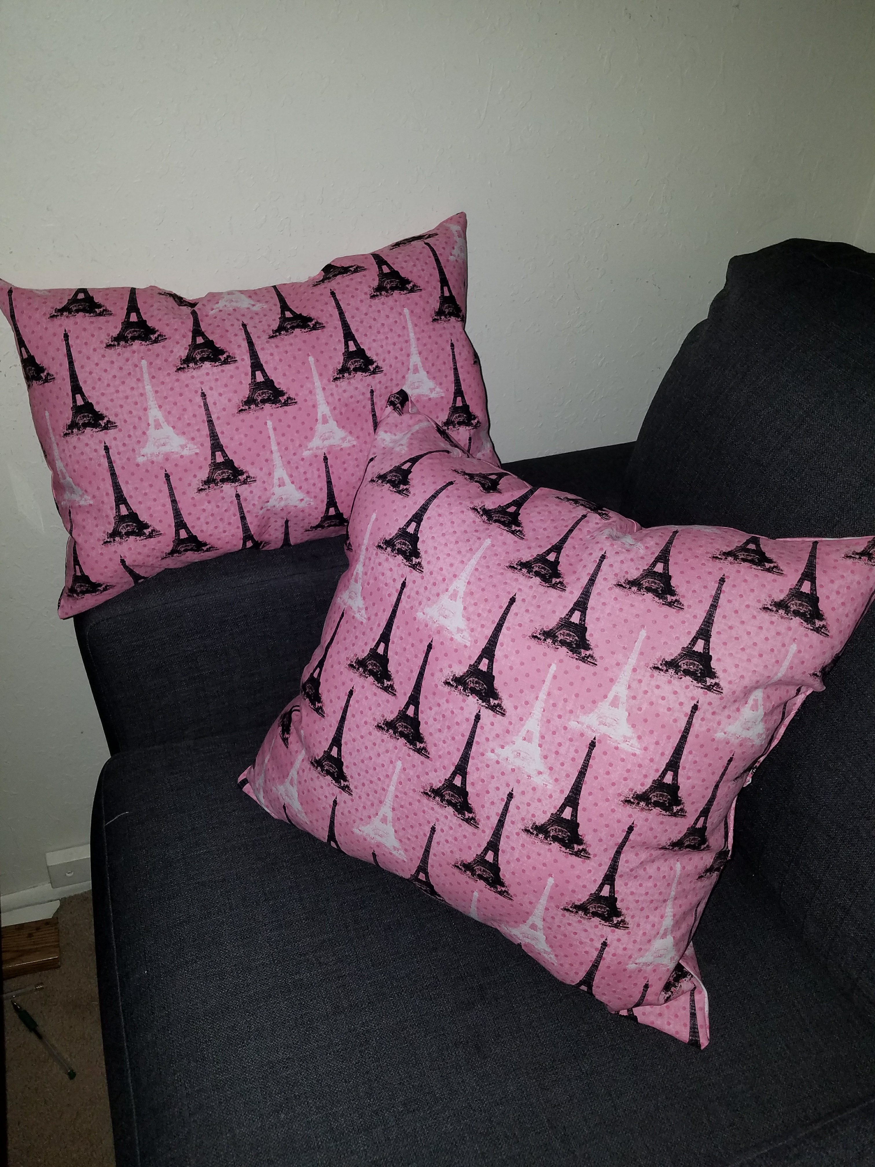 Tonight I’ve had a very cranky baby, I think he’s teething. So with the few free minutes I was able to get, I made some new pillows! I love the fabric! I however need to practice more on my ladder stitch! πππππ
