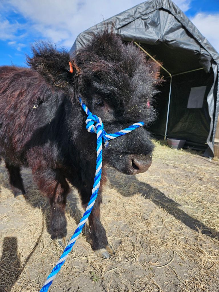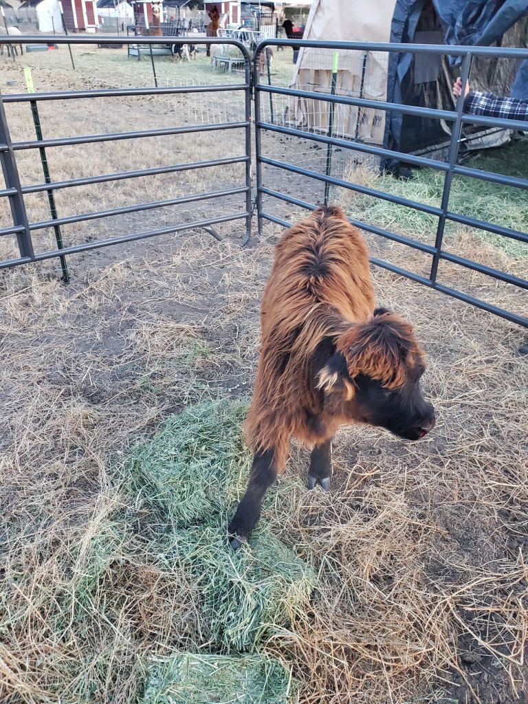 Our other highland cow is our bull calf. He is four months old and about 200 – 250 pounds. We named him Cain.